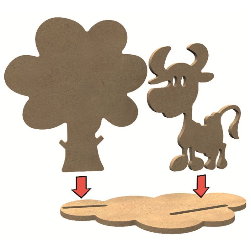 Kreativní sada obsahuje 2 dřevěné výřezy – kravičku a listnatý stromek. Ty jde dozdobit, zasadit do přibaleného stojánku a dát na výstavku. Jaké bude mít kravička barvy, co za ovoce bude růst na stromě? Je to jen na vás!