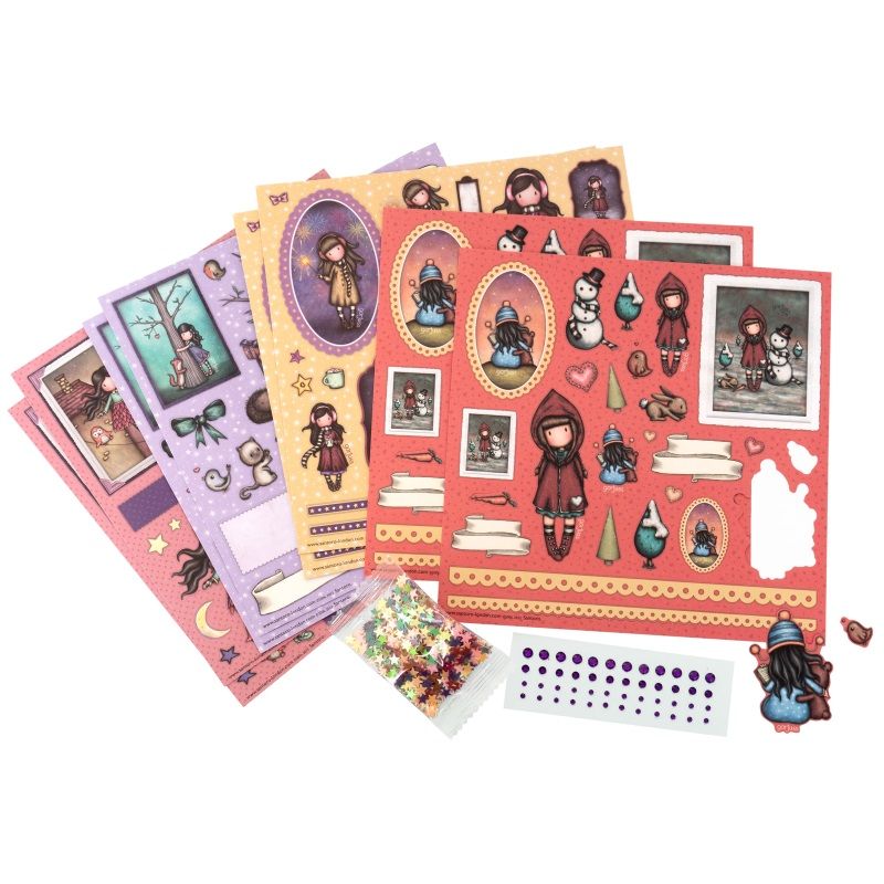 Sada kreativních dekorací, ideální na papírové tvoření. Ocení je hlavně všichni příznivci scrapbookingu a cardmakingu. Zimní motivy s panenkami Gorjuss.