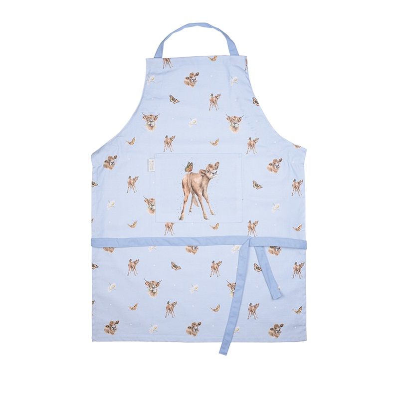 Bavlněná kuchyňská zástěra s originálním designem je klasickým dárkem pro všechny, kteří rádi vaří či pečou. Vzor kraviček, telat a skotského náhorního skotu je po celé ploše zástěry, na velké přední kapse je větší ilustrace telátka s motýlem. Všechny naše chňapky, utěrky a zástěry se navíc dají vtipně kombinovat do sladěných setů, takže můžete své blízké stylově vybavit.