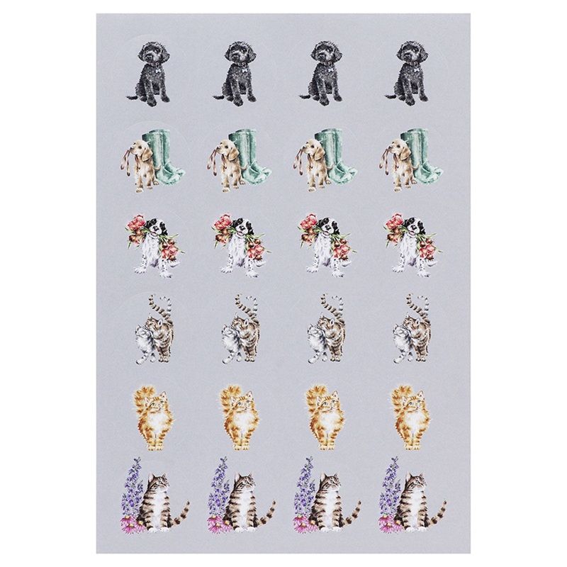 V kartonové kapse je celkem 6 archů po 24 samolepkách s akvarelovými ilustracemi oblíbených zvířat: