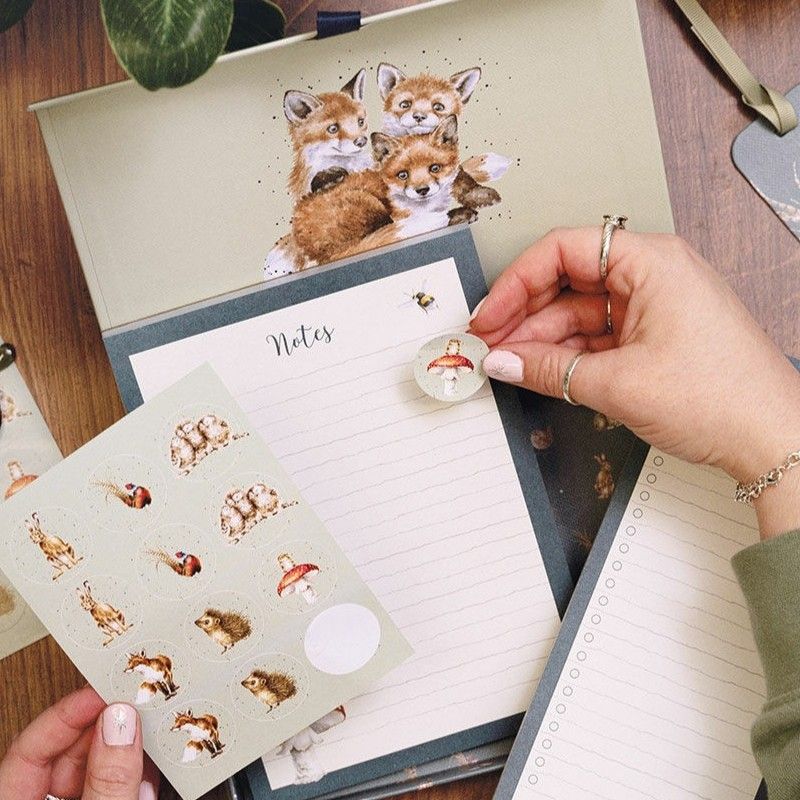 Luxusní sada vybraných papírenských dárků je ideální k rozmazlení někoho, kdo si potrpí na design, sebeorganizaci a perfektně řemeslně zpracované papírnické produkty. Všechny komponenty zdobí ilustrace zvířat britského venkova převzaté z akvarelových maleb výtvarnice Hanny Dale, zakladatelky firmy Wrendale Designs.