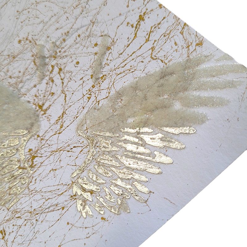 Tipy: Pohrajte si s nanášením pasty a vytvořte tak řadu efektů – od dokonale jednolitých zlatých ploch až po vintage abstraktní nedokonalé detaily, které vzniknout např. při nanášení pasty štětcem. Zkuste přidat trochu zlatých detailů "od ruky“ na mixed media projekty či další díla, kde nepotřebujete přenášet vzor ze šablon.