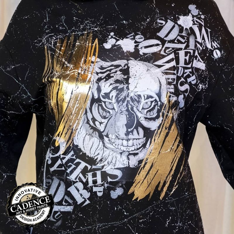 Metalickou nažehlovačku na textil lze použít na super snadné zdobení oblečení nebo na textilní bytové dekorace – jednoduchý návod najdete v delším popisu. Rozměr archu A4 (21 x 30 cm). Motiv zlaté čmáranice. Celý popis