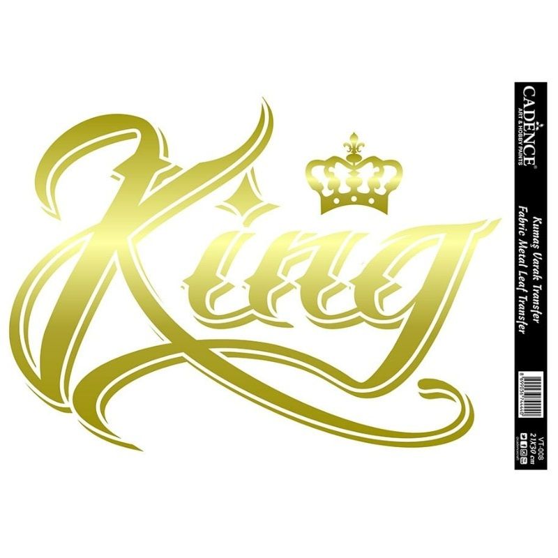 Metalickou nažehlovačku na textil lze použít na super snadné zdobení oblečení nebo na textilní bytové dekorace – jednoduchý návod najdete v delším popisu. Rozměr archu A4 (21 x 30 cm). Motiv zlatého nápisu King. Celý popis
