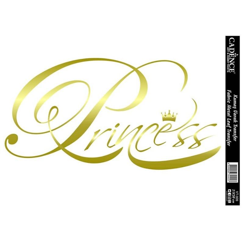 Metalickou nažehlovačku na textil lze použít na super snadné zdobení oblečení nebo na textilní bytové dekorace – jednoduchý návod najdete v delším popisu. Rozměr archu A4 (21 x 30 cm). Motiv zlatého nápisu Princess. Celý popis