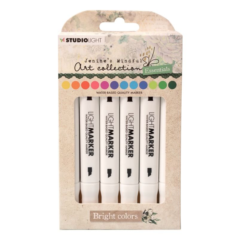 Sada oboustranných fixů v sytých odstínech. Na jednom konci je malý kulatý hrot (šíře stopy cca 1,5 mm), na druhém konci je větší seříznutý hrot (šíře stopy cca 3 mm). Hroty jsou vyměnitelné, lze je snadno vyjmout. Popisovače jsou čtyřhranné a mají řádnou tloušťku, takže se krásně drží.