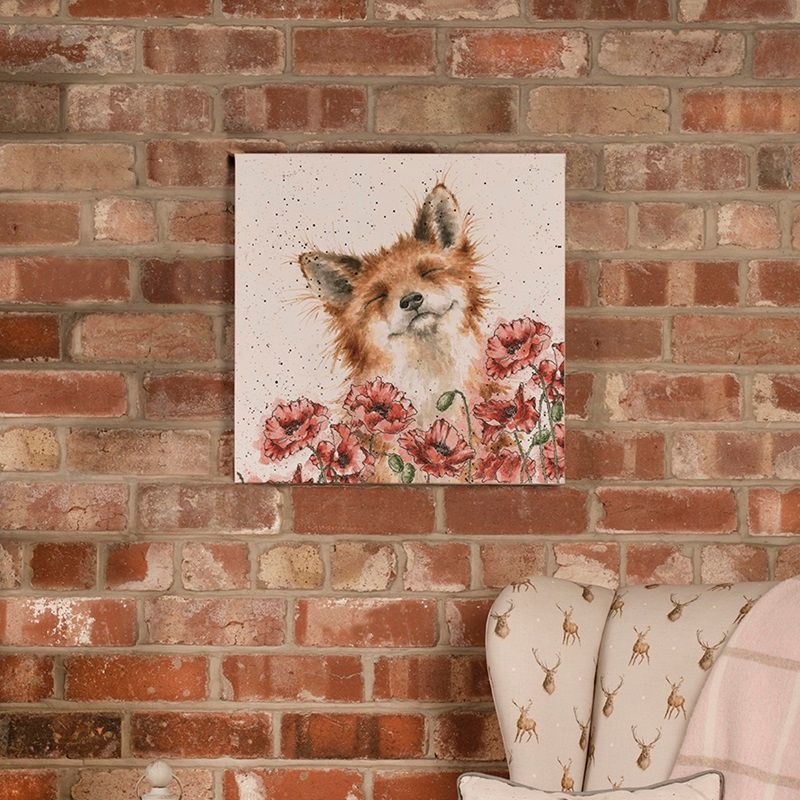 Obraz Wrendale Designs "Poppy Field", 50x50 cm - Liška a vlčí máky