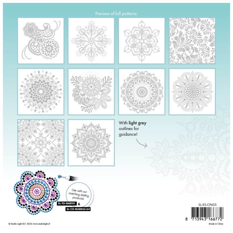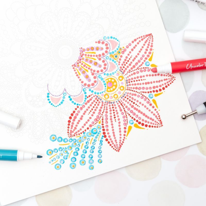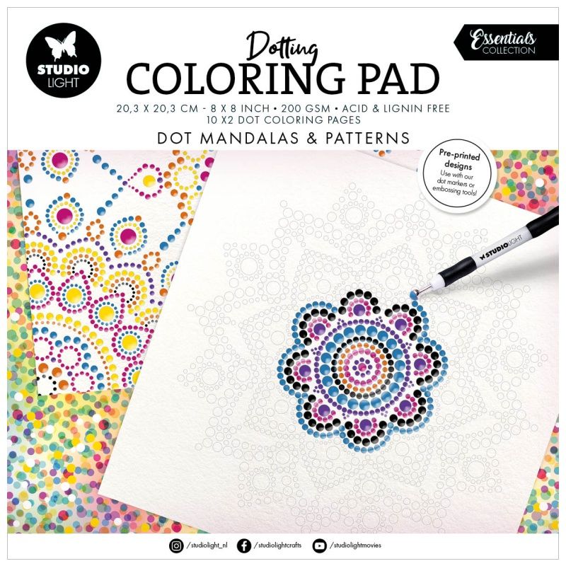 Chtěli byste si zkusit techniku tečkování mandal, ale necítíte se na rýsování a navrhování vlastních obrazců? Pak přesně pro vás jsou určeny tyto omalovánky od nizozemské značky Studio Light – čekají v nich předpřipravené designy a na vás je jenom si vybrat své oblíbené barvičky a ponořit se do mandalového zenu. Díky extra kvalitnímu papíru můžete využít barvy i fixy, aniž by se papír zkrabatil nebo propil.