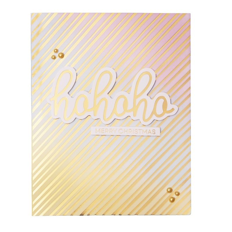 Sada dekorativních papírových výseků s motivy vánočních nápisů v angličtině určených převážně k papírovému tvoření. Nápisy samotné jsou metalicky lesklé a mají kolem sebe bílý rámeček.