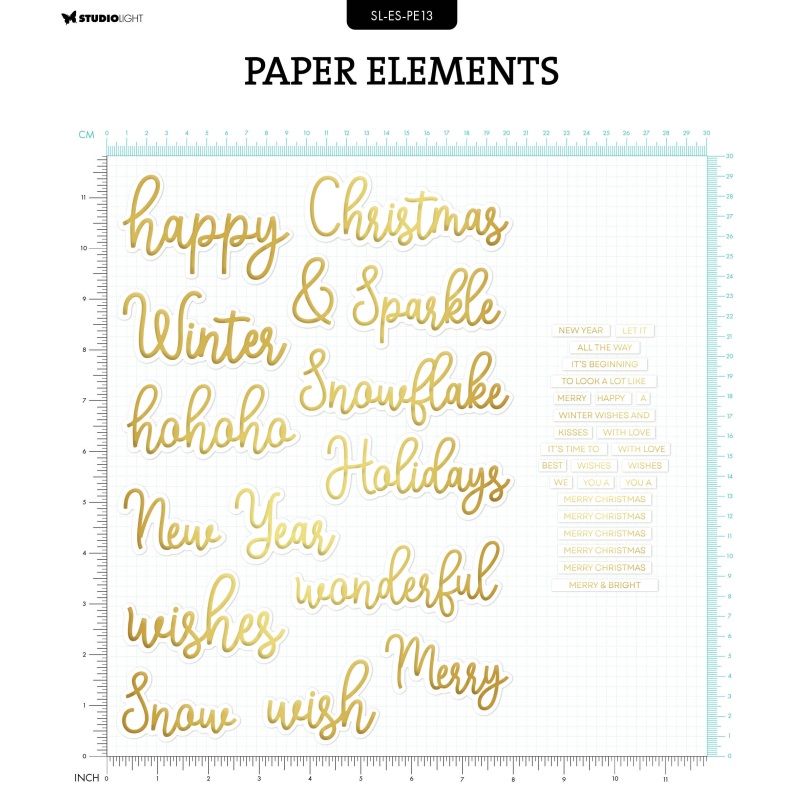 Papírové výseky Studio Light, 40 ks - Vánoční nápisy, zlaté