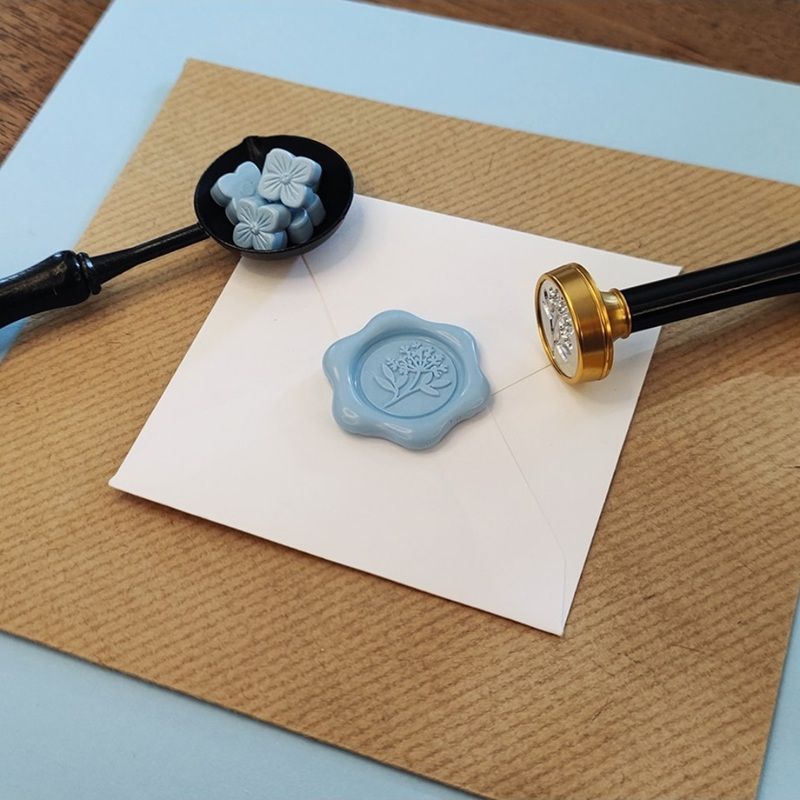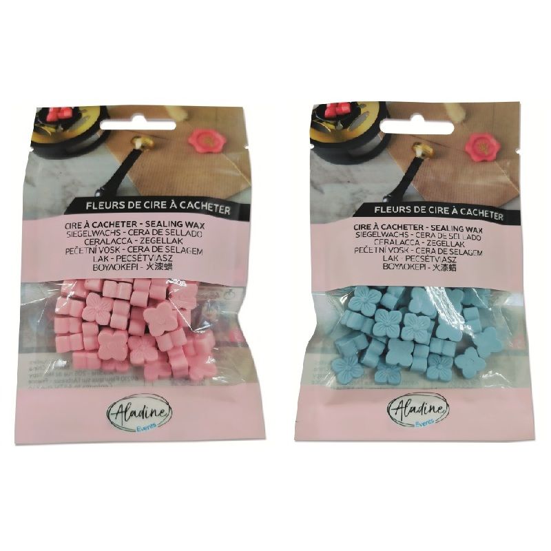 Pečetící vosk ve formě granulí tvarovaných jako kytičky se používá s pečetní sadou umožňující ho rozehřát v teflonové lžičce nad plamenem svíčky. K výrobě 1 pečetě stačí rozehřát 2 kytičky, při práci s pečetními formami doporučujeme 3 kytičky. Pečeť můžete vytvořit jednobarevnou nebo různé barvy míchat.