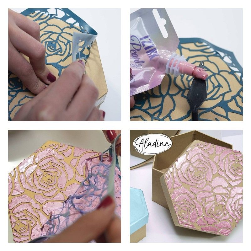 Perleťová barva Izink Pearly byla vytvořena ve spolupráci s newyorským Mixed Media umělcem Septhem Apterem. Lesklý perleťový nádech barev dodá vašim výrobkům příjemný, romantický vzhled. Má jemnou pastózní konzistenci a je vysoce krycí.