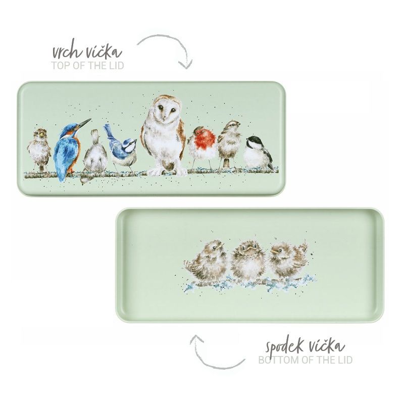 Multifunkční plechová nádoba od britské značky Wrendale Designs má obdélný tvar a pevně uzavíratelné víčko. Materiál ochrání obsah uvnitř před vlhkostí a světlem, takže je vhodná k uskladňování nejrůznějších věcí. V kuchyni se hodí jako boxík na suché potraviny, krekry, sušenky a podobně. Využijete ji i na pracovním stole nebo v koupelně na uložení drobností, účtenek, kancelářských či kosmetických potřeb atd.