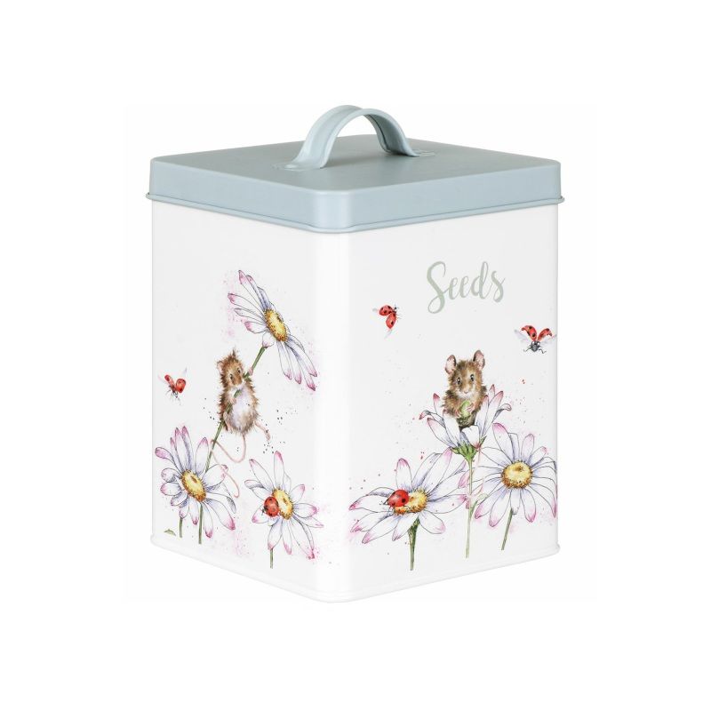 Dóza má zajímavý hranatý tvar s jemnými zakulacenými rožky a barevně odlišené víko, které je pevně uzavíratelné. Po celém vnějšku dózy jsou akvarelové ilustrace myšek a květin ze štětce Hanny Dale, zakladatelky britské značky Wrendale Designs.