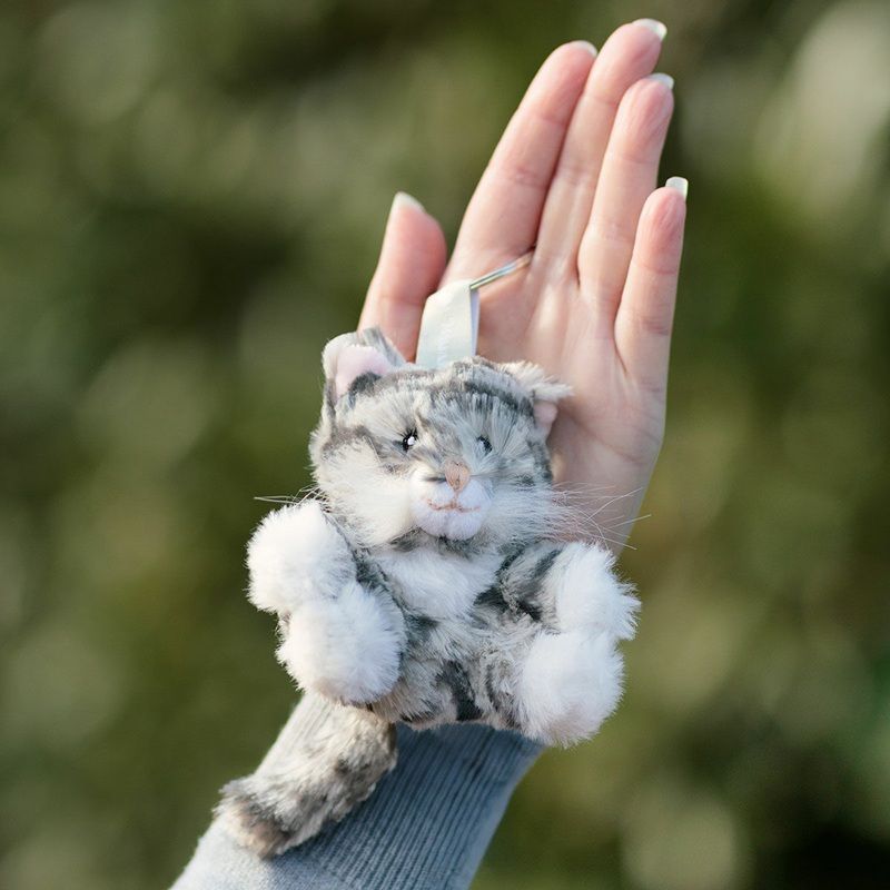 Plyšová kočka na stříbrném kovovém kroužku vás může doprovázet kamkoli zavěšena na kabelce, zavazadle, na kočárku nebo na klíčích. Jako všechny naše plyšové klíčenky je design inspirován velkými plyšovými hračkami od britské značky Wrendale Designs , s nimiž sdílí svou kvalitu a osobitost.