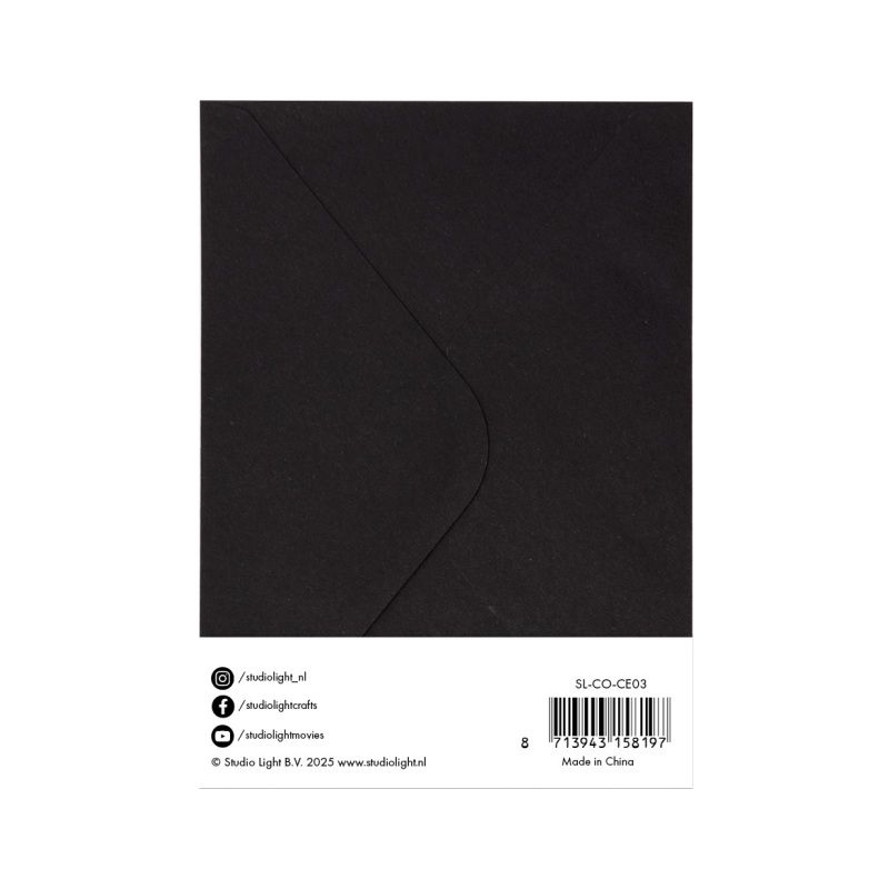V balení je 10 přání s přehybem a 10 sladěných obálek. Černý papír je netradiční, ale nemusíte se ho bát – je úžasně elegantní a dá obzvlášť vyniknout zlaté a stříbrné barvě.
