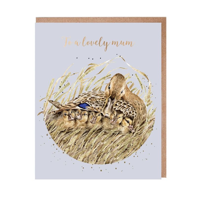 Sada přání a obálky od rodinné firmy Wrendale Designs s akvarelovou malbou kachní maminky a jejích kačátek od britské výtvarnice Hanny Dale má na přední straně lesklé zlaté detaily a nápis „To a lovely mum“ – milé mamince. Skvěle se bude hodit k narozeninám, svátku nebo na den matek .
