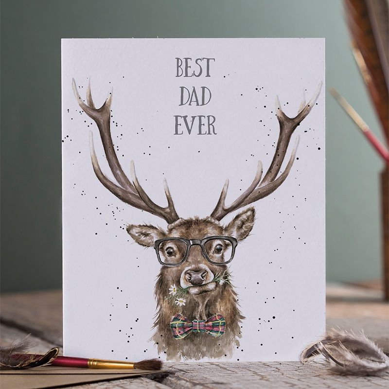 Sada přání a obálky od rodinné firmy Wrendale Designs s akvarelovou malbou módního jelena od britské výtvarnice Hanny Dale má na přední straně nápis „Best dad ever“ – nejlepší táta všech dob. Skvěle se bude hodit k narozeninám nebo ke dni otců .