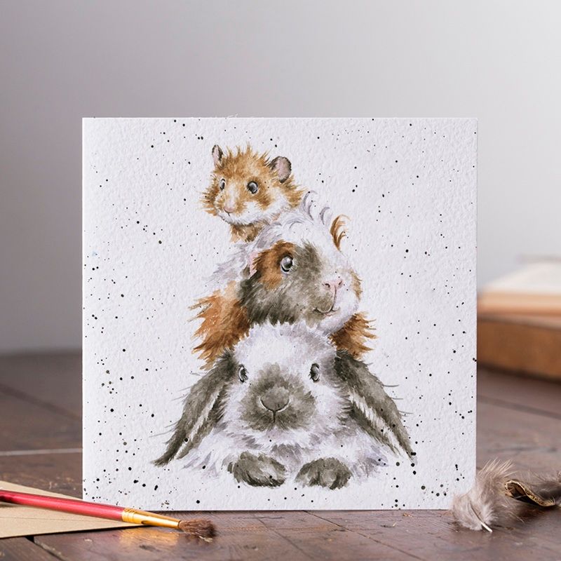 Sada přání a obálky od rodinné firmy Wrendale Designs s akvarelovou malbou králíčka, morčete a křečka od britské výtvarnice Hanny Dale. Uvnitř přáníčka je prostor na vlastní věnování a hodí se tak na každou příležitost. Příjemný texturovaný papír byl zvolen proto, aby obrázek vypadal jako namalovaný přímo na přáníčku.