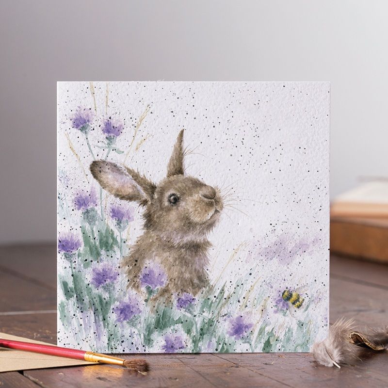 Sada přání a obálky od rodinné firmy Wrendale Designs s akvarelovou malbou králíčka na louce od britské výtvarnice Hanny Dale. Uvnitř přáníčka je prostor na vlastní věnování a hodí se tak na každou příležitost. Příjemný texturovaný papír byl zvolen proto, aby obrázek vypadal jako namalovaný přímo na přáníčku.