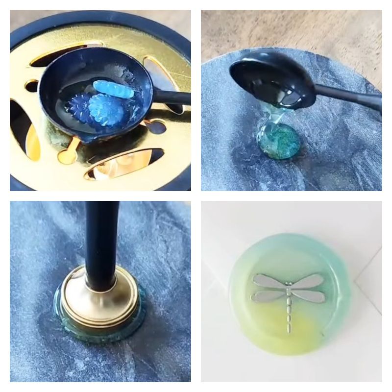 Tip! Věděli jste, že pečeť nemusíte vytvářet přímo na finálním projektu? Když ji vyrobíte na mramorové či keramické podložce, pečeť z ní lze lehce sejmout. Na její spodek pak stačí umístit oboustranně lepicí pásku a vyrobit tak větší množství pečetních „samolepek“ na pozdější použití. Případnou nepovedenou pečeť lze jednoduše rozstříhat a znovu rozehřát k výrobě nové pečeti.