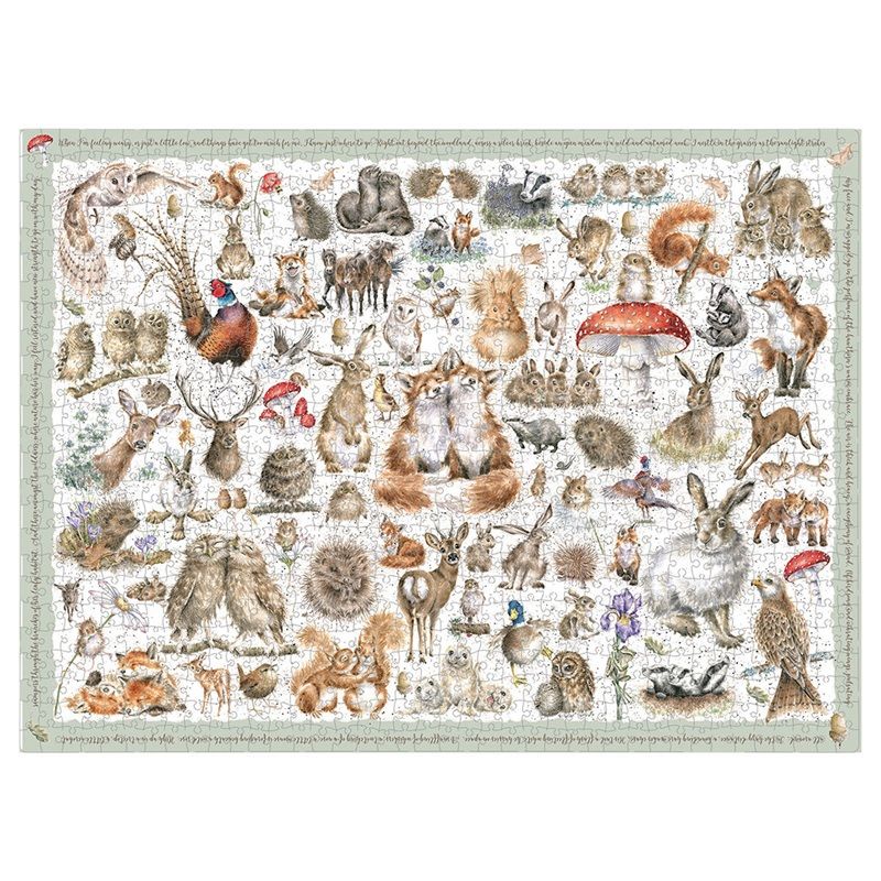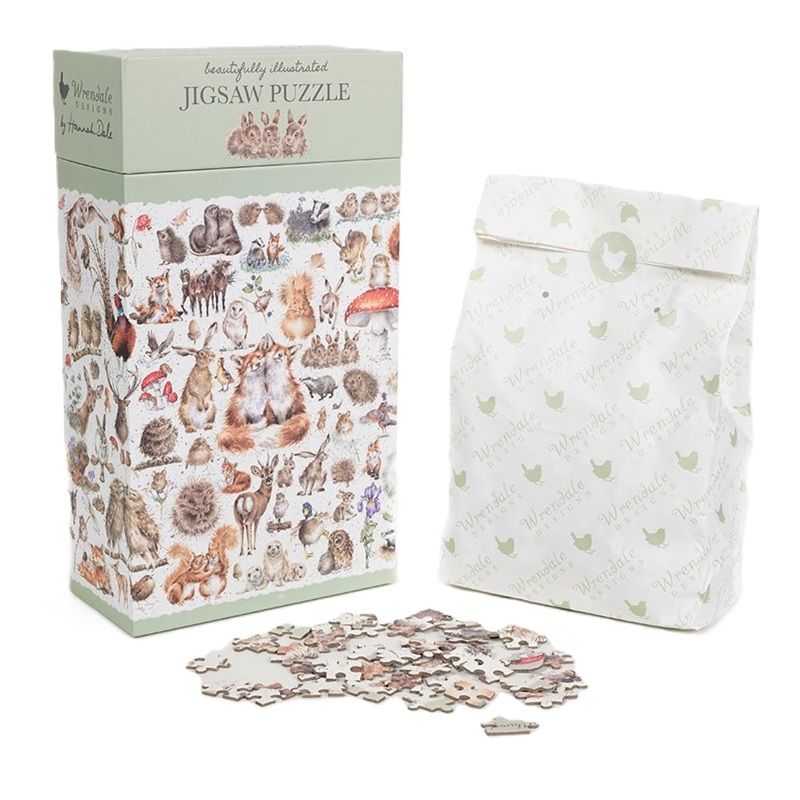 Skládačka puzzle s motivy lesních zvířátek poskytne hodiny zábavy celé rodině! Na odhalení čeká více než 100 detailních akvarelových maleb ze štětce Hanny Dale, zakladatelky britské firmy Wrendale Designs. Obrázek lemuje tematická báseň, kterou Hannah napsala speciálně pro tento produkt. Najdete v koláži také schovaného maskota značky ptáčka střízlíka?