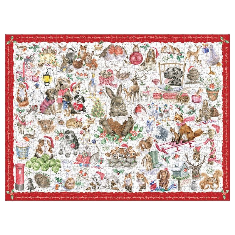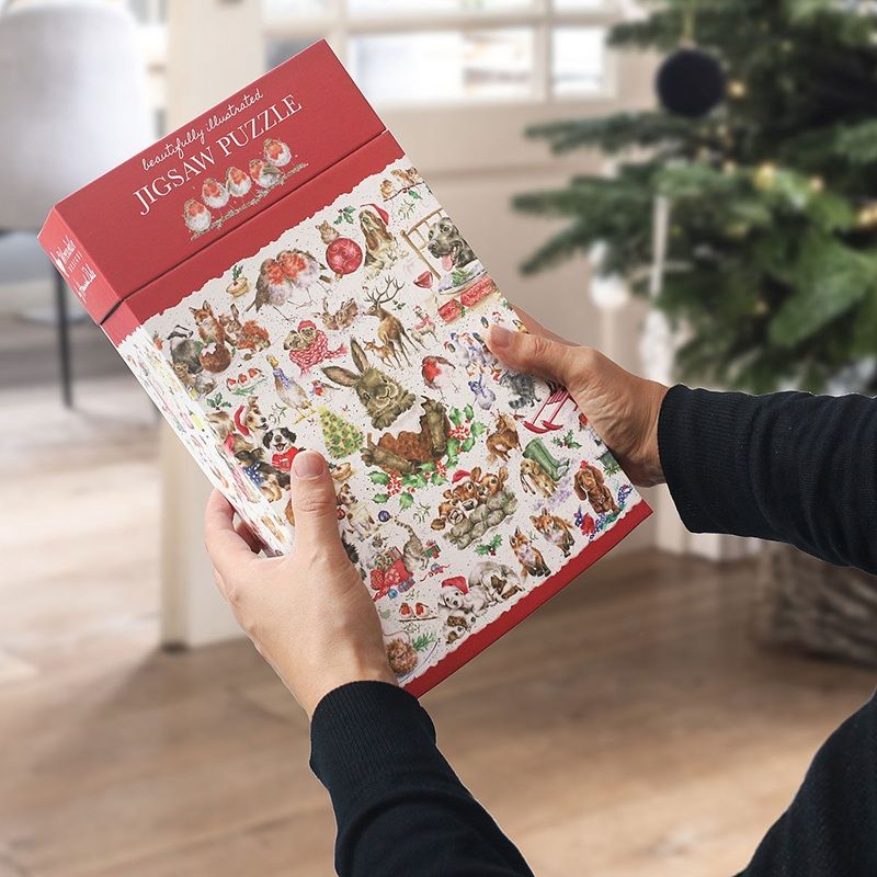Skládačka puzzle s motivy vánočních zvířátek poskytne hodiny zábavy celé rodině! Na odhalení čeká více než 100 detailních akvarelových maleb ze štětce Hanny Dale, zakladatelky britské firmy Wrendale Designs. Obrázek lemuje tematická báseň, kterou Hannah napsala speciálně pro tento produkt. Najdete v koláži také schovaného maskota značky ptáčka střízlíka?