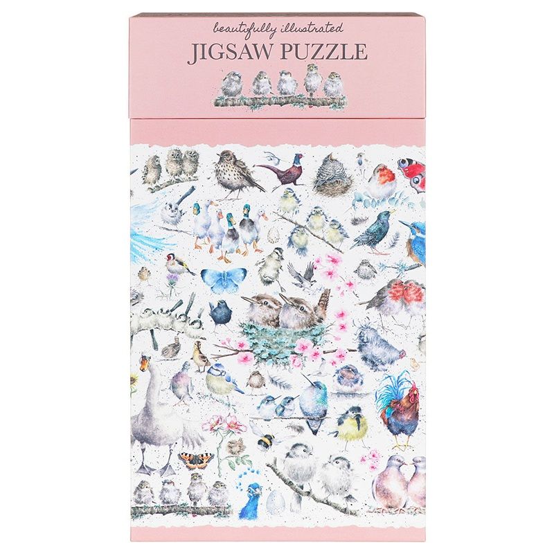 Skládačka puzzle s motivy známých ptáčků poskytne hodiny zábavy celé rodině! Na odhalení čeká více než 100 detailních akvarelových maleb ze štětce Hanny Dale, zakladatelky britské firmy Wrendale Designs. Obrázek lemuje tematická báseň, kterou Hannah napsala speciálně pro tento produkt. Najdete v koláži také schovaného maskota značky ptáčka střízlíka?