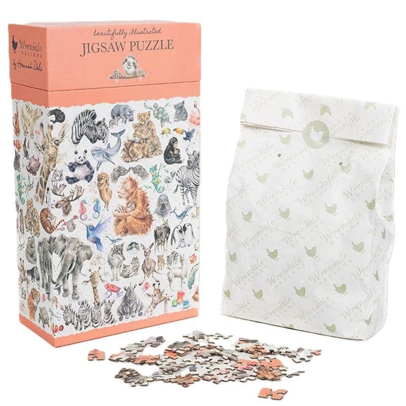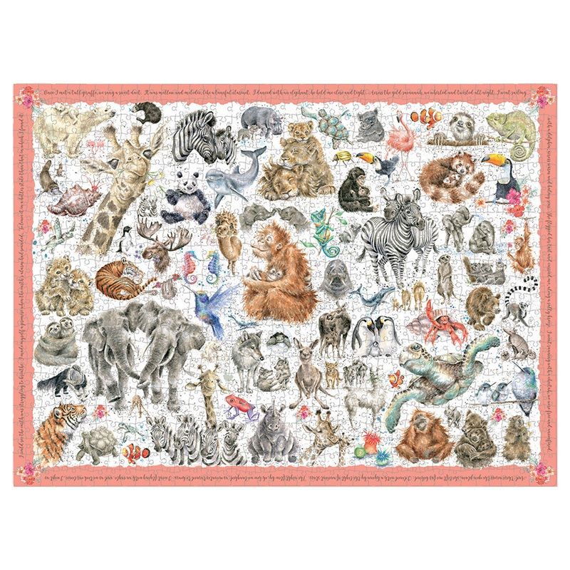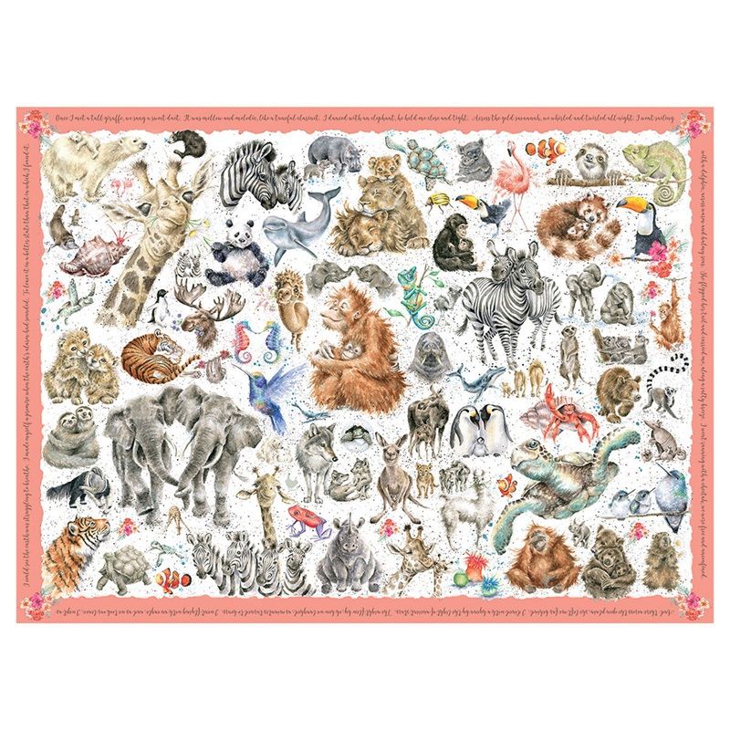 Skládačka puzzle s motivy cizokrajných zvířat poskytne hodiny zábavy celé rodině! Na odhalení čeká více než 100 detailních akvarelových maleb ze štětce Hanny Dale, zakladatelky britské firmy Wrendale Designs. Obrázek lemuje tematická báseň, kterou Hannah napsala speciálně pro tento produkt. Najdete v koláži také schovaného maskota značky ptáčka střízlíka?