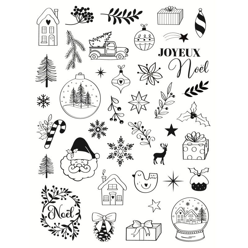 V sadě je 39 razítek a černý razítkovací polštářek na papír.