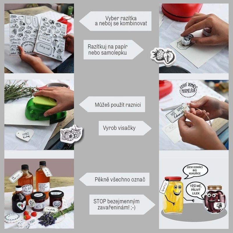 Kombinujte, tiskněte a polepujte, zdobte - udělejte ze své zavařeniny neodolatelný kousek! Ať už čalamáda, okurky, hrášek, pikantní, z vlastní zahrádky nebo bio, všechny jsou 100 % vyrobené s láskou. Stejně jako tato razítka navržená výtvarnicí Irenou Slavíkovou.