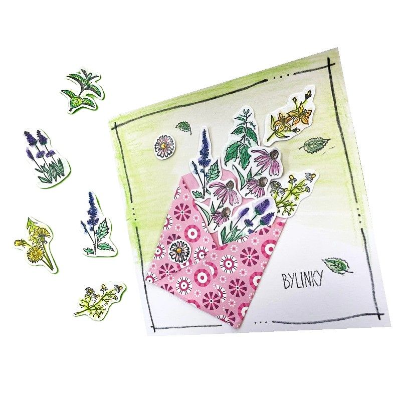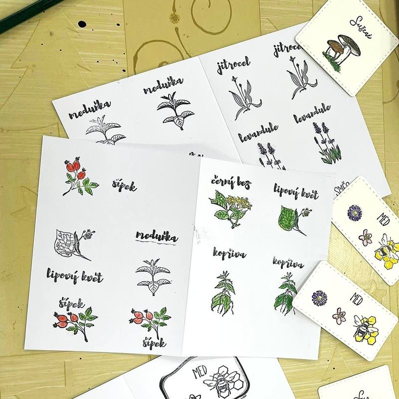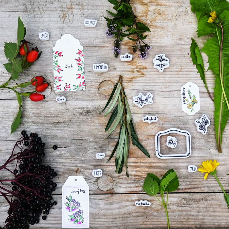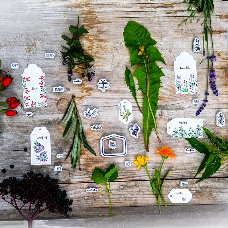 Rádi sbíráte a sušíte bylinky? Vyrábíte různé bylinkové směsy na čaje, sirupy, tinktury či masti? Díky této sadě razítek si svoje produkty označíte, abyste později nemuseli přemýšlet, co se v sáčku, lahvičce nebo dózičce ukrývá.