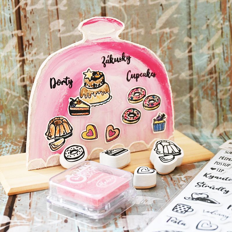Sada obsahuje 45 razítek s českými nápisy a obrázky sladkých dobrot.