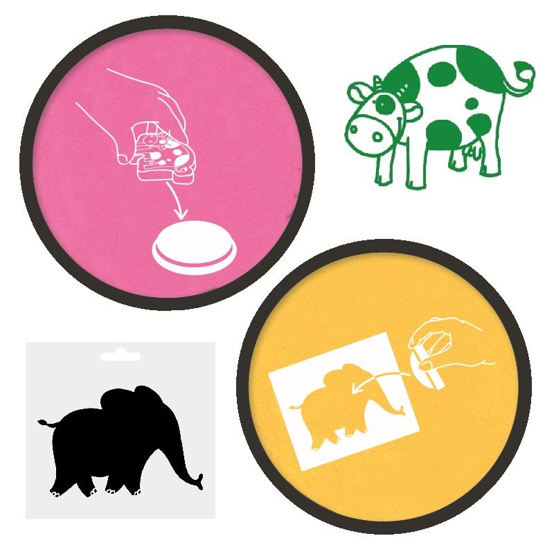 Sada skvěle poslouží při tvoření s dětmi – můžete je použít ke klasickému razítkování s dětskými razítky. Další možností použití je přenášení motivů ze šablon pro děti. Stačí si vzít vybraný polštářek do ruky a přímo s ním natupovat barvu přes šablonku na papír.