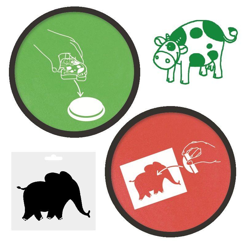 Sada skvěle poslouží při tvoření s dětmi – můžete je použít ke klasickému razítkování s dětskými razítky. Další možností použití je přenášení motivů ze šablon pro děti. Stačí si vzít vybraný polštářek do ruky a přímo s ním natupovat barvu přes šablonku na papír.
