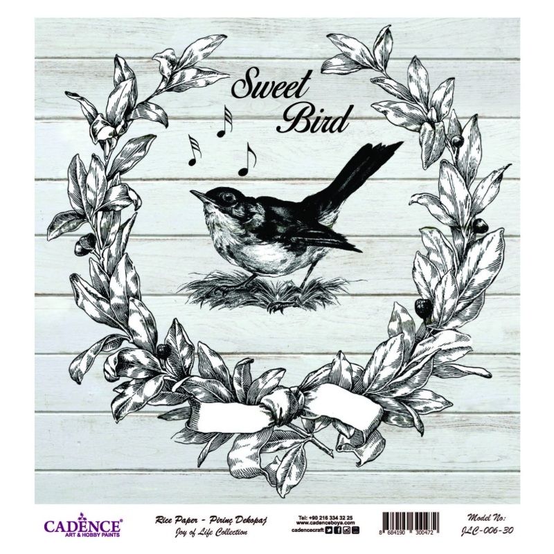 Rýžový papír je ideální na decoupage – ubrouskovou techniku. Vintage motiv s ověnčeným ptáčkem vynikne na výrobcích z papíru, dřeva, textilu apod. Rozměr 30 x 30 cm. Celý popis