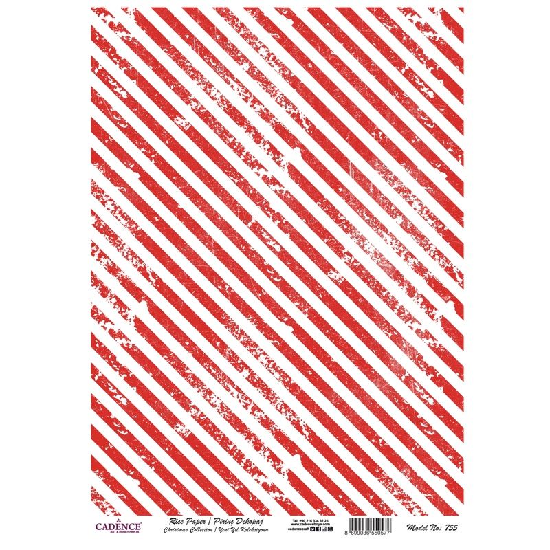 Rýžový papír Cadence, A4 - Šikmé vánoční pruhy