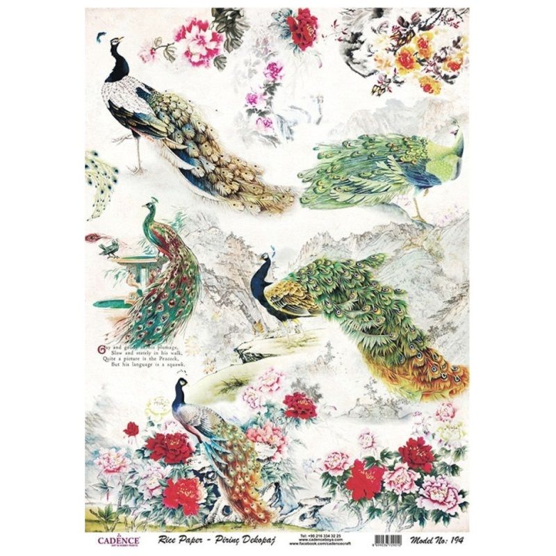 Rýžový papír Cadence - Barevní pávi - VYBERTE VELIKOST