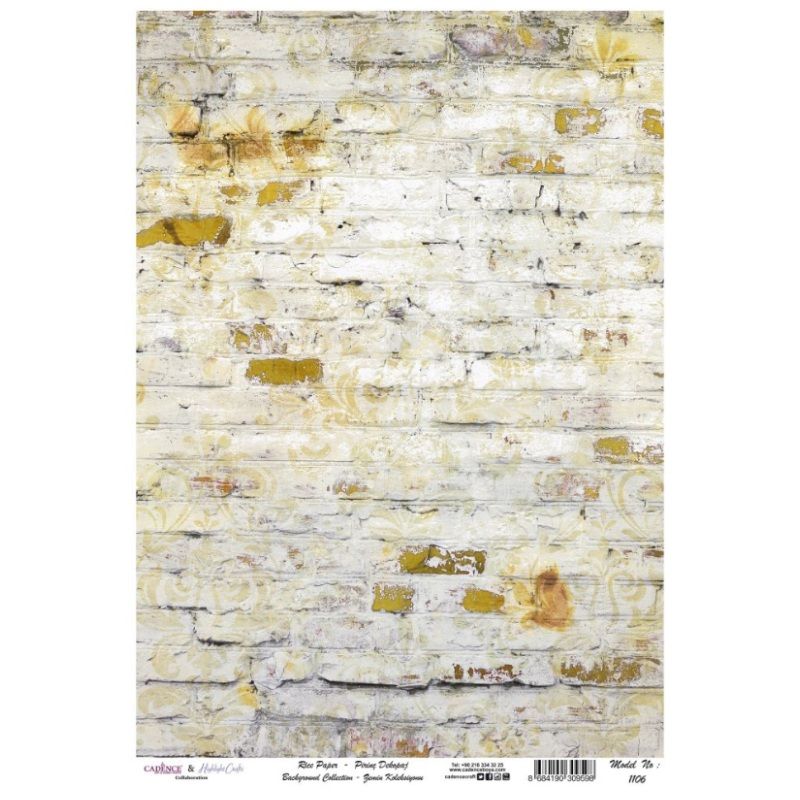 Rýžový papír je ideální na decoupage – ubrouskovou techniku. Pozaďový motiv omšelé stěny vynikne na výrobcích z papíru, dřeva, textilu apod. Formát A3 nebo A4. Celý popis