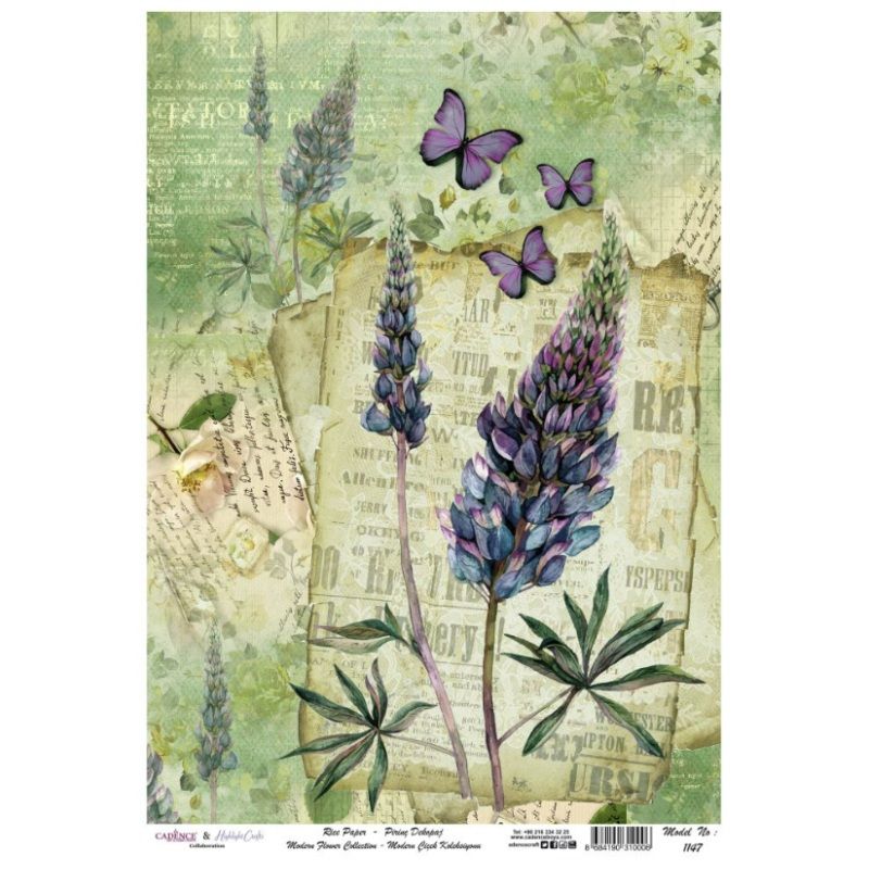 Lehký, jemný, ale zároveň pevný papír ideální na dekupáž. Rýžový papír je mírně průhledný a zblízka jsou v něm viditelná rýžová vlákna. Papír tak získává na omak jemnou strukturu. Lze ho použít na téměř jakýkoliv povrch, například na sklo, keramiku, dřevo, textil, papír apod.