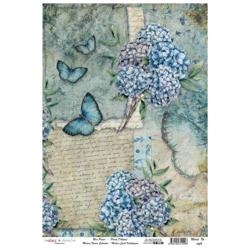 Rýžový papír je ideální na decoupage – ubrouskovou techniku. Vintage motiv květin a motýlů vynikne na výrobcích z papíru, dřeva, textilu apod. Formát A3 nebo A4.