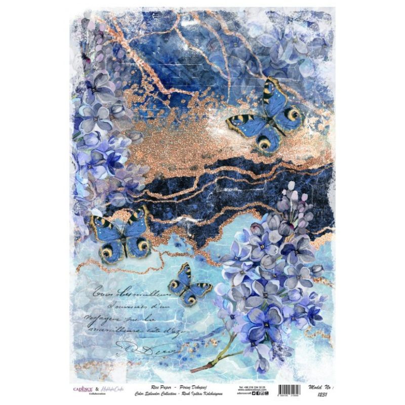 Rýžový papír Cadence - Modrozlaté babočky - VYBERTE VELIKOST