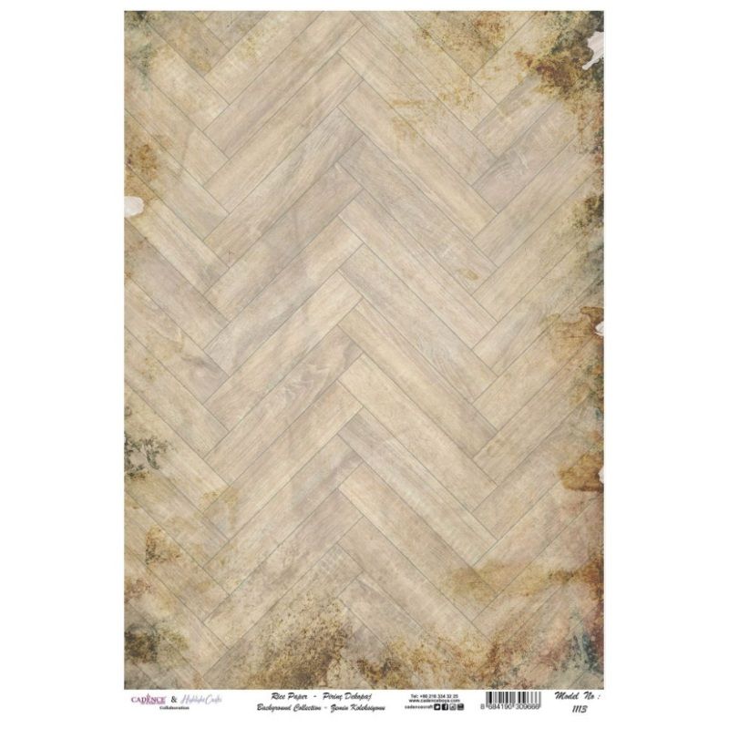 Rýžový papír je ideální na decoupage – ubrouskovou techniku. Pozaďový motiv s dřevěnými parketami vynikne na výrobcích z papíru, dřeva, textilu apod. Formát A3 nebo A4.