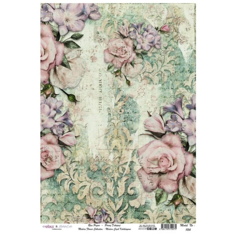 Rýžový papír Cadence - Růže v ornamentu - VYBERTE VELIKOST