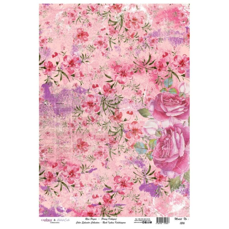 Rýžový papír Cadence - Růžové květinky - VYBERTE VELIKOST
