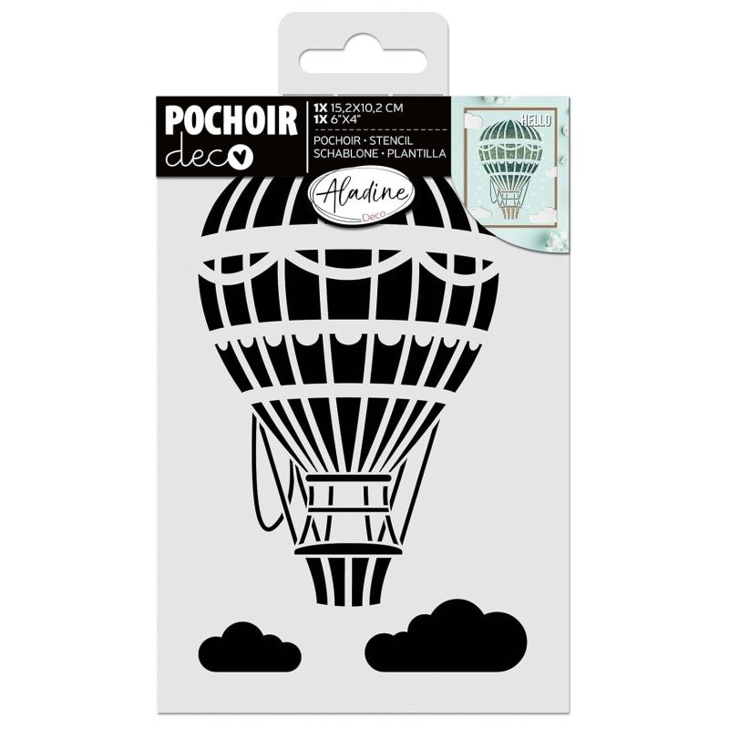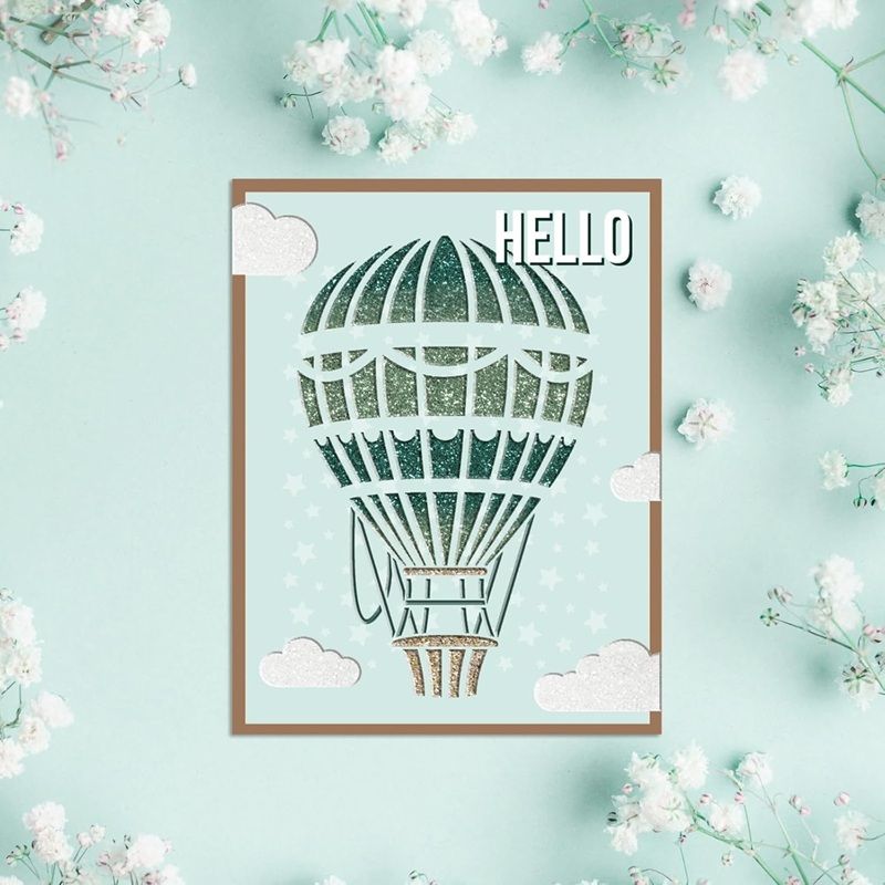 Šablona s motivem horkovzdušného balónu a obláčků je vhodná pro práci s papírem, textilem, dřevem a mnoha dalšími materiály. Rozměr šablonky je 15 x 10 cm, díky velikosti se obzvlášť hodí na drobnější papírové projekty, třeba výrobu přáníček formátu A6.