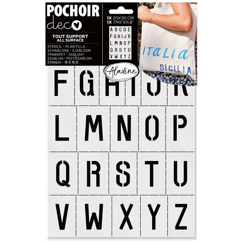 Praktická abeceda! Monogramy, jména, nápisy… s touto abecedou to bude hračka! Klasická plastová šablona se všemi základními písmeny abecedy.
