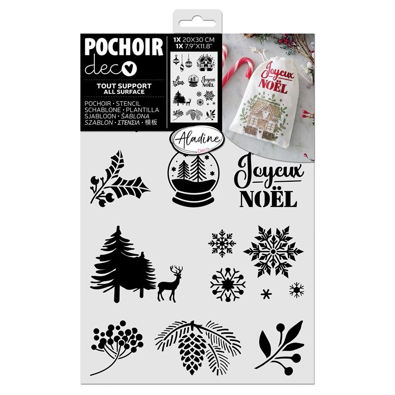 Šablona s 10 vánočními motivy je vhodná pro práci s papírem, textilem, dřevem a mnoha dalšími materiály. Rozměr šablonky je 20 x 30 cm, mezi obrázky si určitě vyberete ten pravý pro svůj projekt – zkuste třeba nazdobit vlastní adventní kalendář nebo obal na nadílku od Mikuláše.