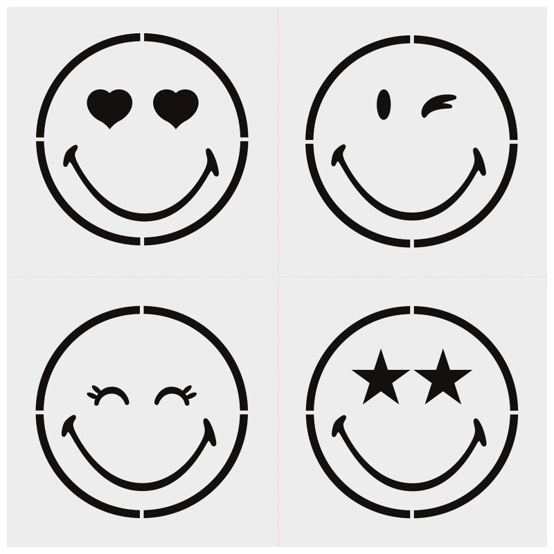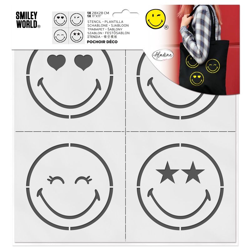 Šablona s motivy čtyř různých smajlíků je součástí zbrusu nové kolekce ve spolupráci s firmou Smiley World, domovinou originálního motivu, který se v posledních 50 letech stal neodmyslitelnou součástí populární kultury. Šablona má široké využití v mnoha kreativních oborech, je vhodná pro práci s textilem, papírem a všude tam, kde potřebujete vytvořit originální podklad.
