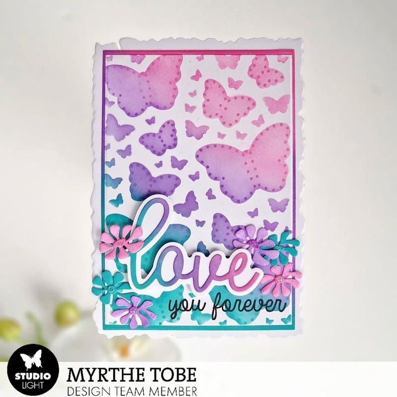 Šablony s motivem motýlků určené k vrstvení a dekorování papíru ve 2 krocích – nanášením barev a vyšíváním. V balení najdete 2 šablony formátu A6, ideální jsou na výrobu přání, papírových ozdob, dekorování Bullet Journalu apod.
